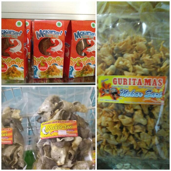 Mekar Sari menjual produk olahan ikan lele dan olahan belimbing: Abon Lele,rambak kulit lele,gurita mas abon,manisan blimbing,dodol belimbing, sirup belimbing,sari buah belimbing